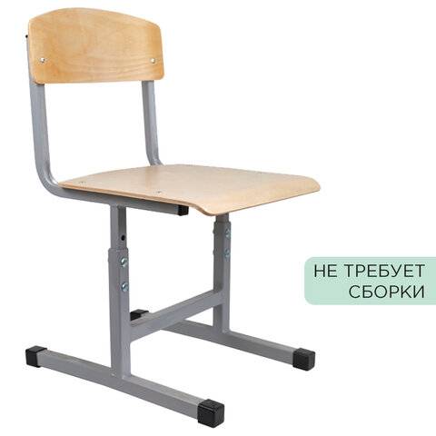 Стул ученический регулируемый СУТ.05-01, 400х375х660-740 мм, рост 4-6, серый каркас, фанера лак
